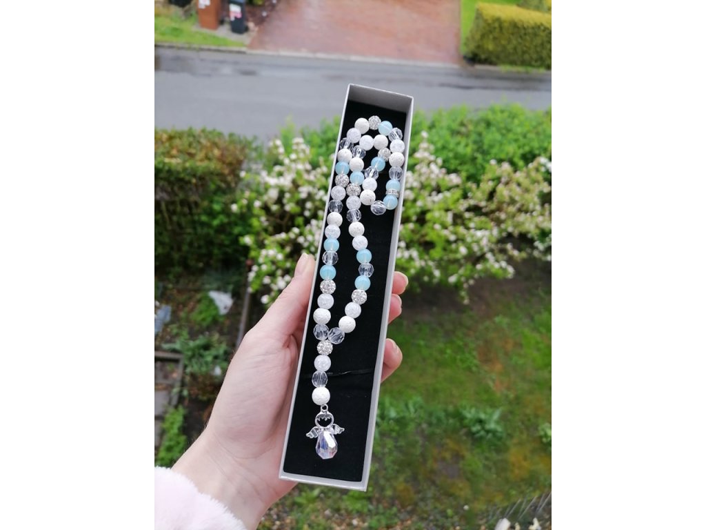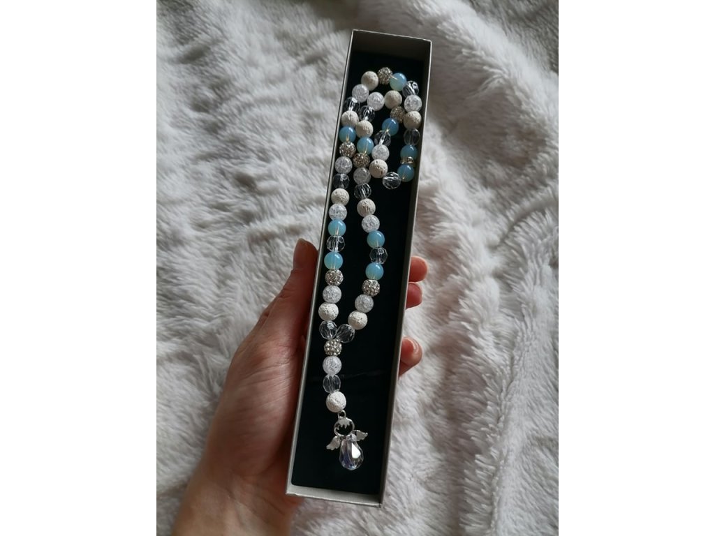 Doplněk se skládá z bílé lávy,čirých korálků, shamballa, syntetického opálu ,syntetického praskaného křišťálu