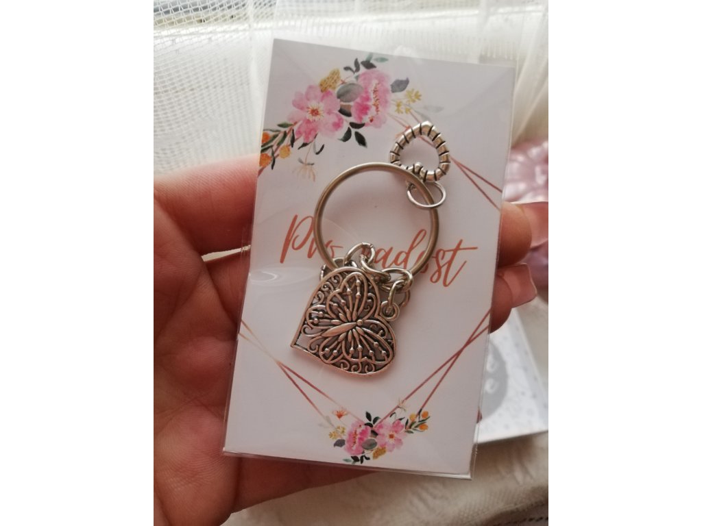 Klíčenka je zabalena v celofánovém sáčku na kartičce s věnováním na foto.
