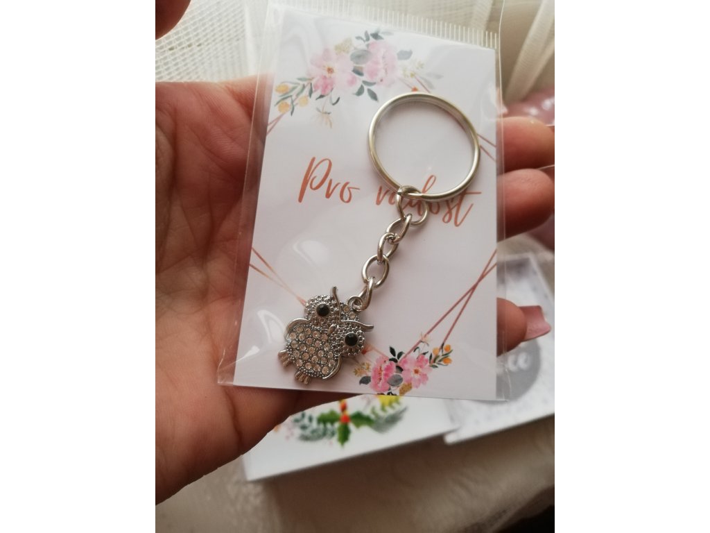 Klíčenka je zabalena v celofánovém sáčku na kartičce s věnováním na foto.